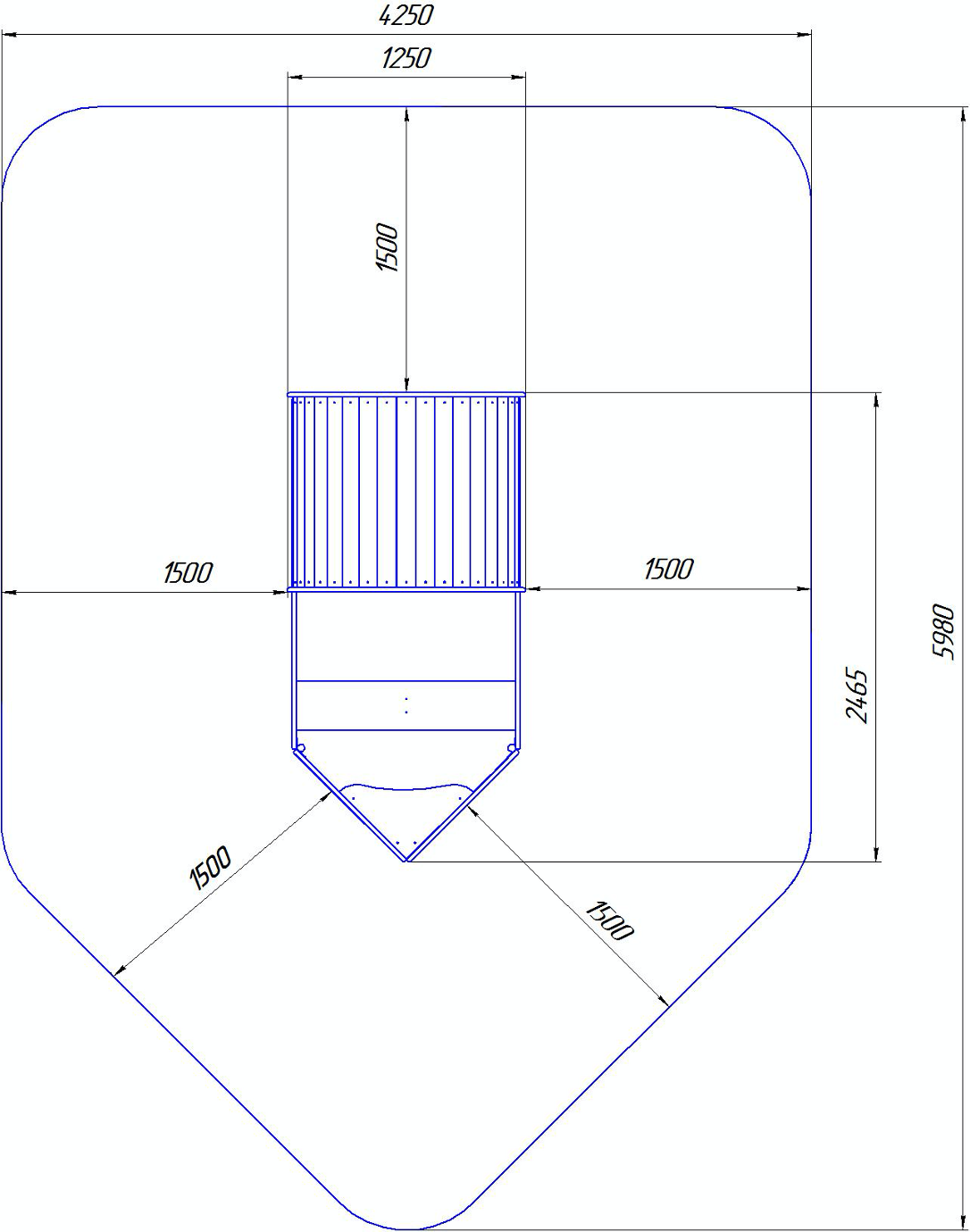 Занимаемая площадь с учетом зон безопасности и приземления: