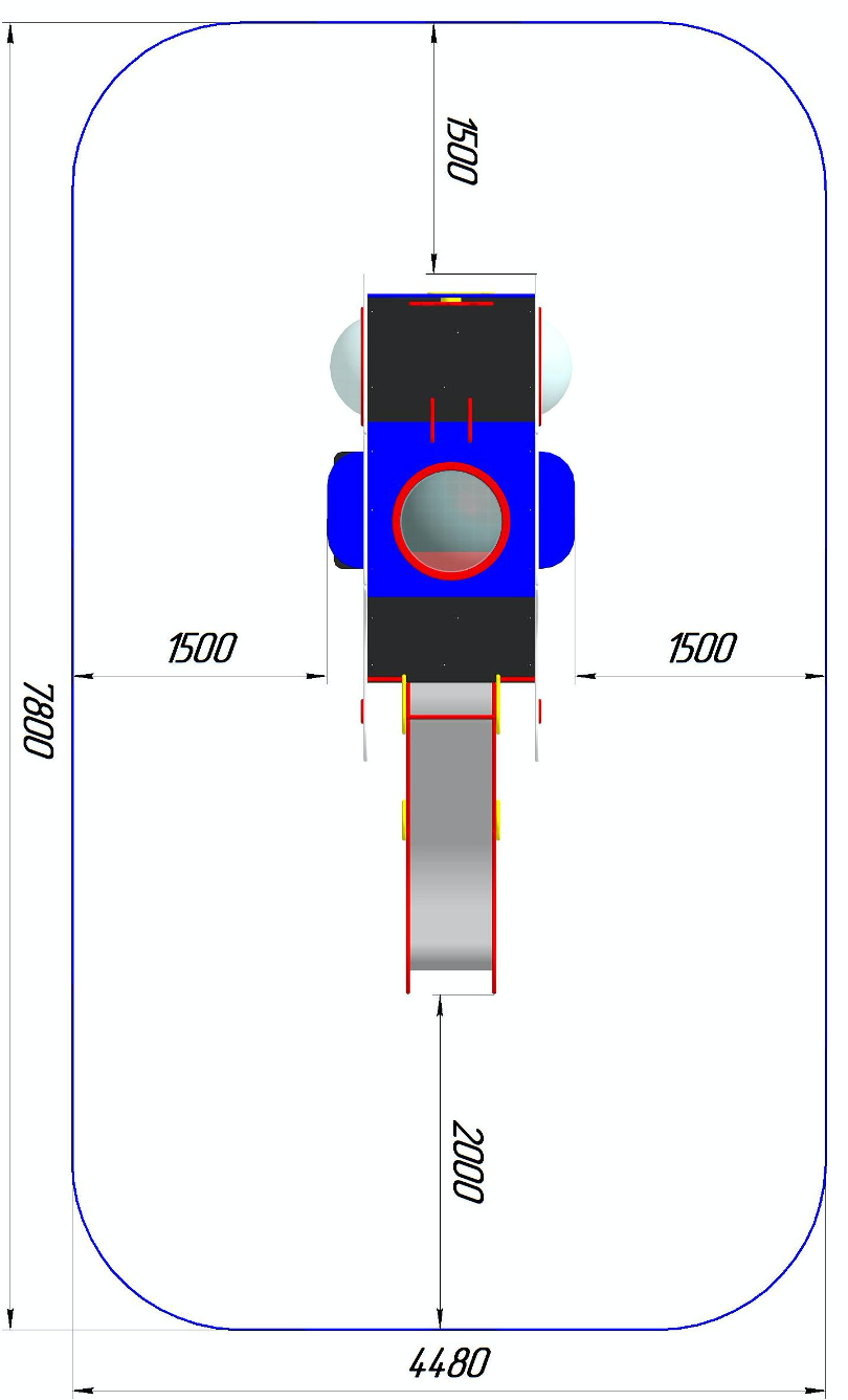 Занимаемая площадь с учетом зон безопасности и приземления:
