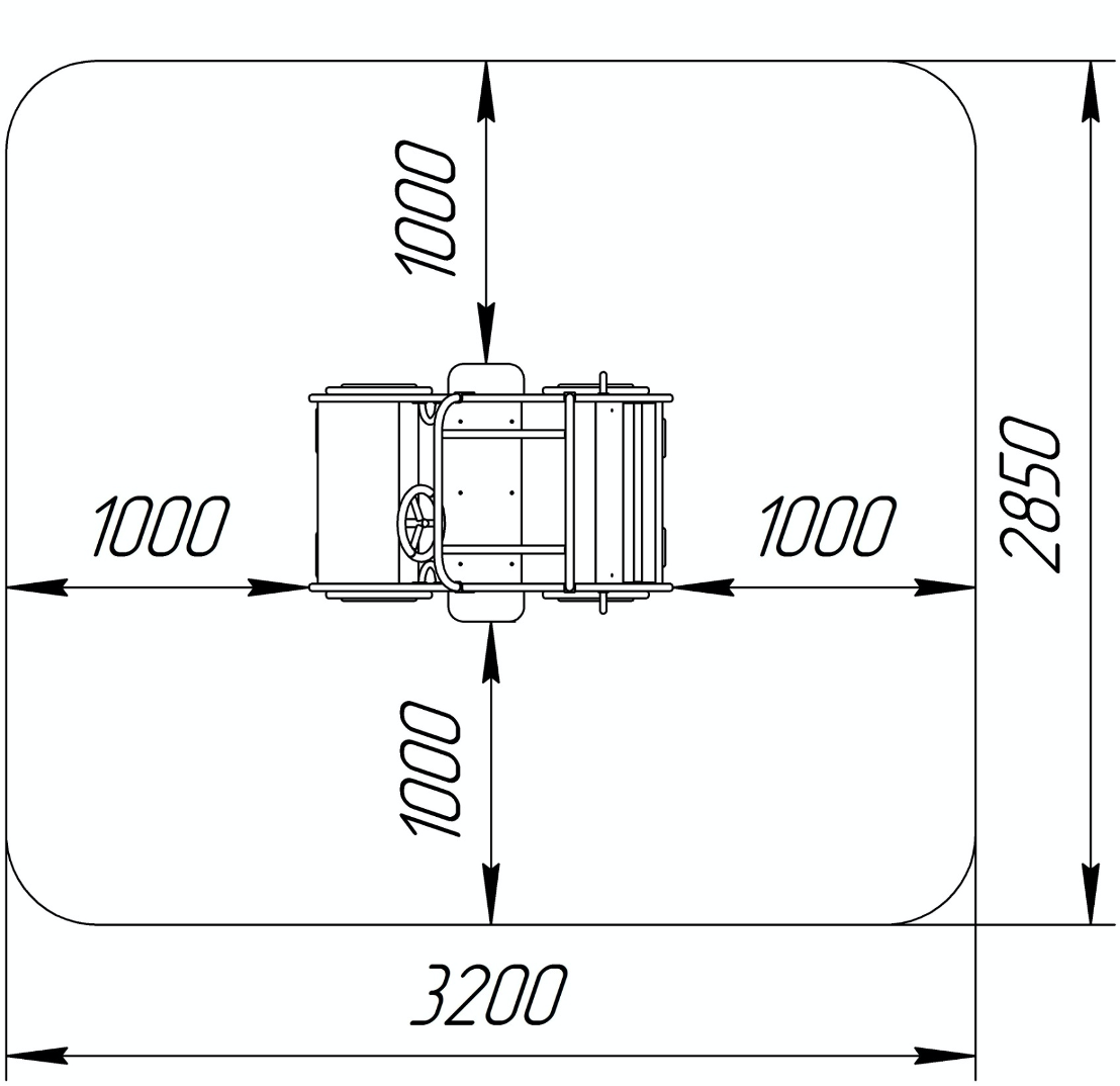Занимаемая площадь с учетом зон безопасности и приземления: