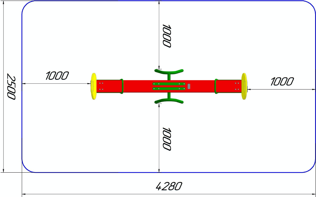 Занимаемая площадь с учетом зон безопасности и приземления: