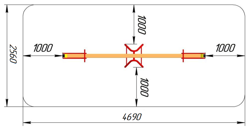 Занимаемая площадь с учетом зон безопасности и приземления: