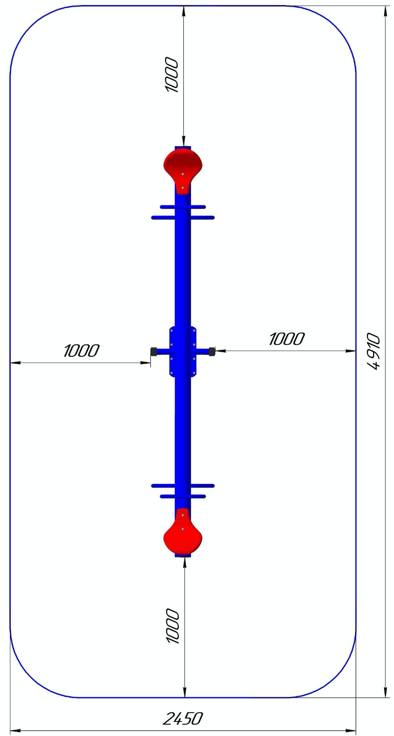 Занимаемая площадь с учетом зон безопасности и приземления: