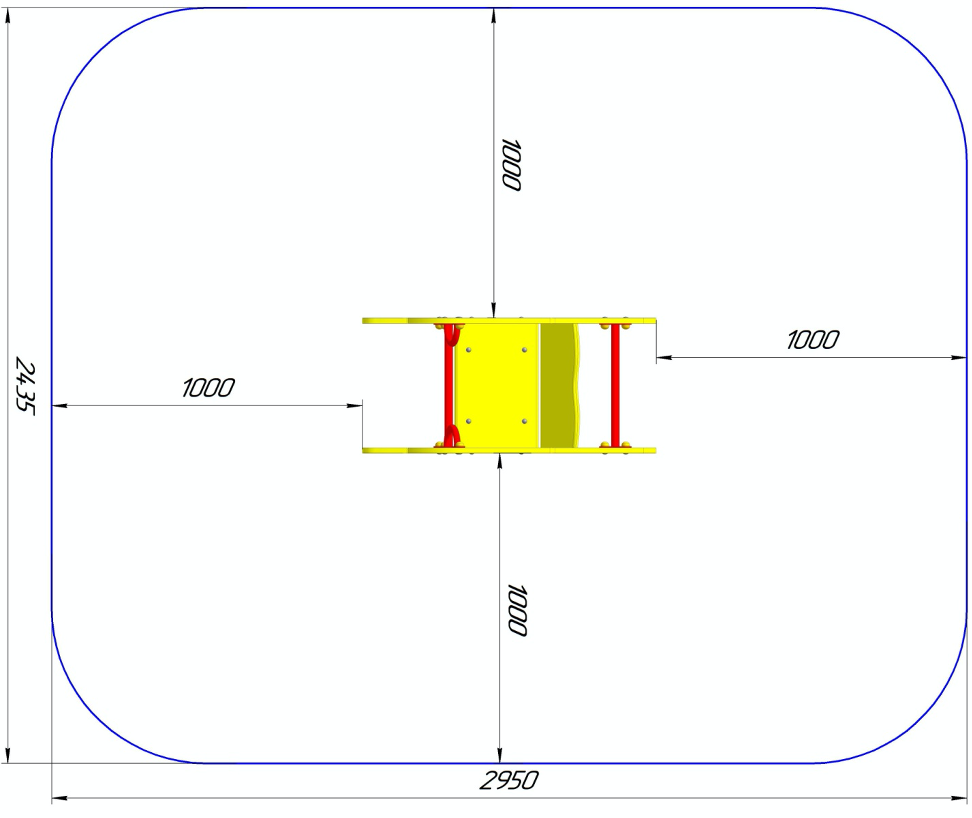 Занимаемая площадь с учетом зон безопасности и приземления: