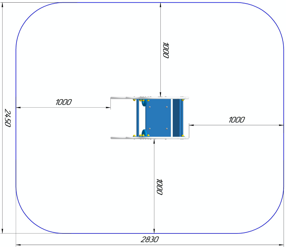 Занимаемая площадь с учетом зон безопасности и приземления:
