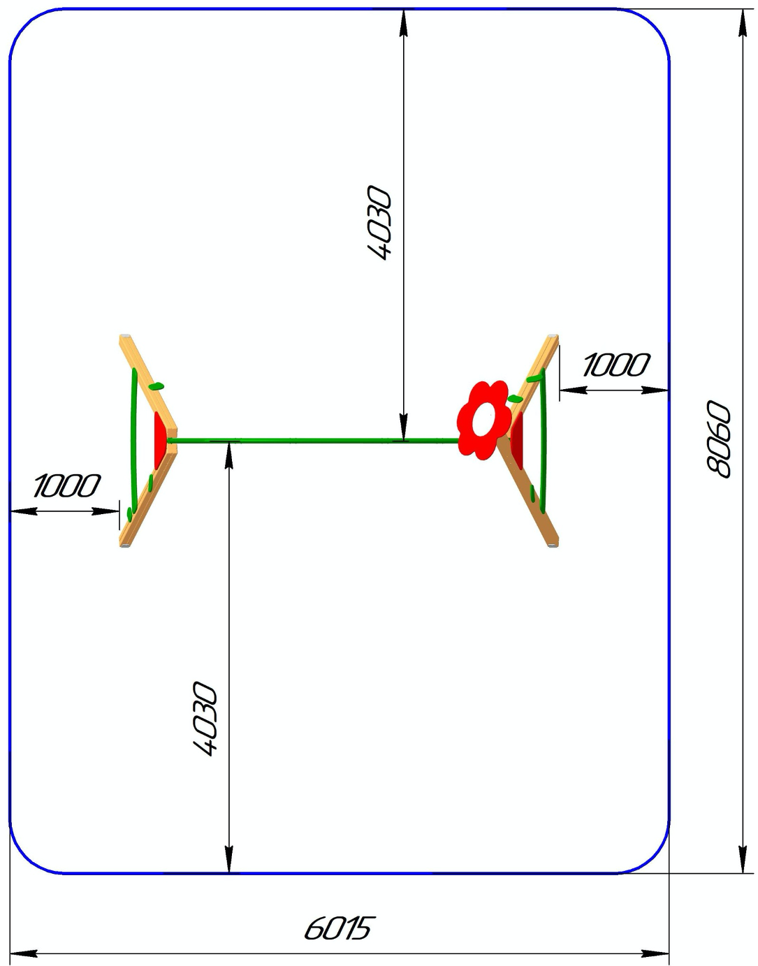 Занимаемая площадь с учетом зон безопасности и приземления: