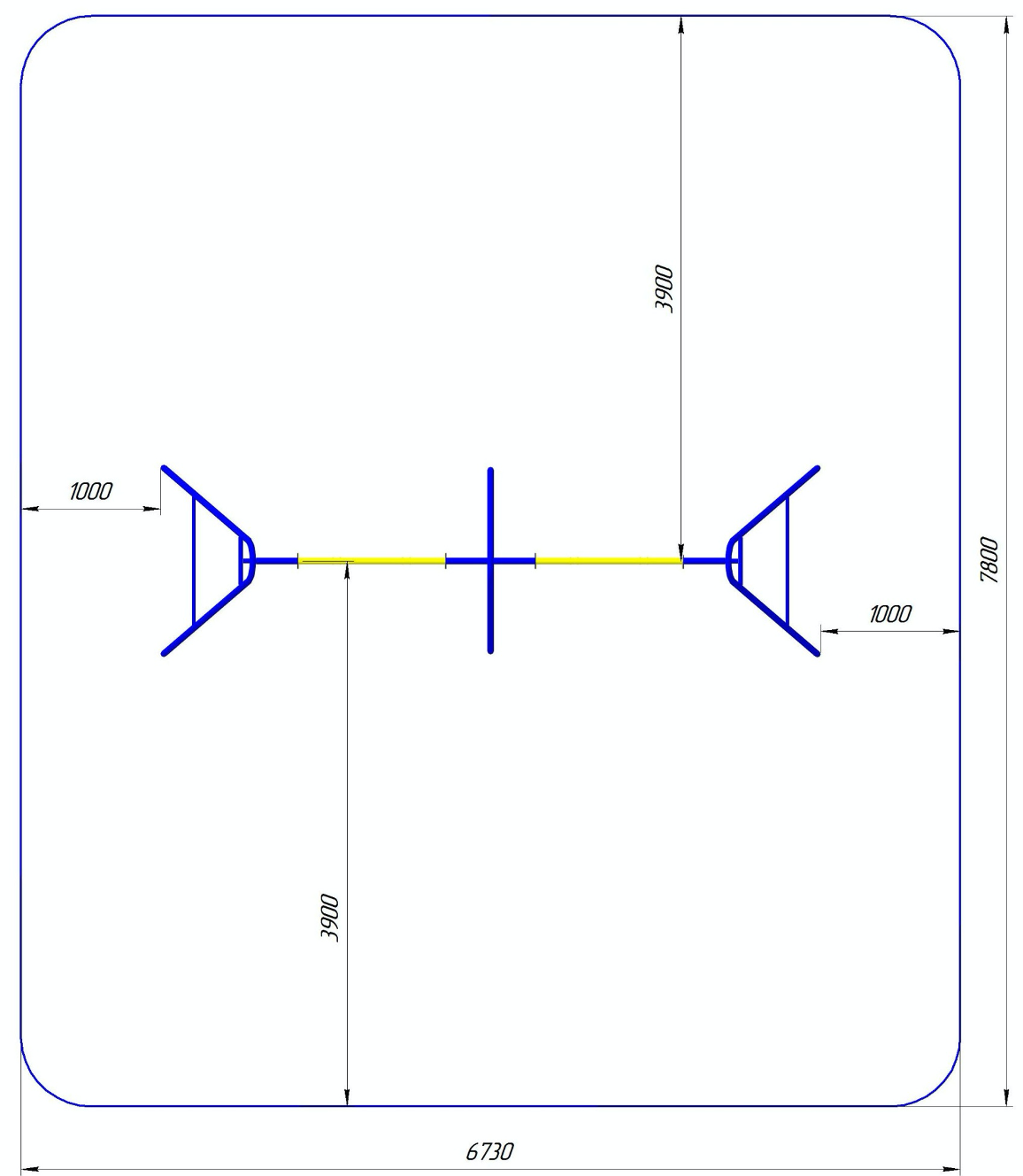 Занимаемая площадь с учетом зон безопасности и приземления: