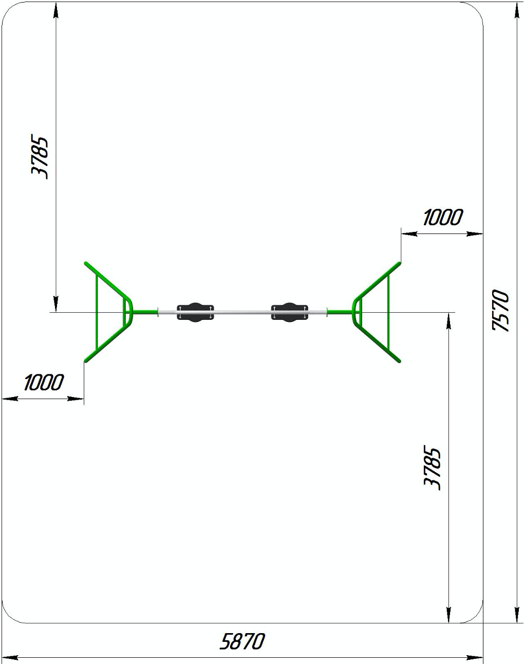 Занимаемая площадь с учетом зон безопасности и приземления: