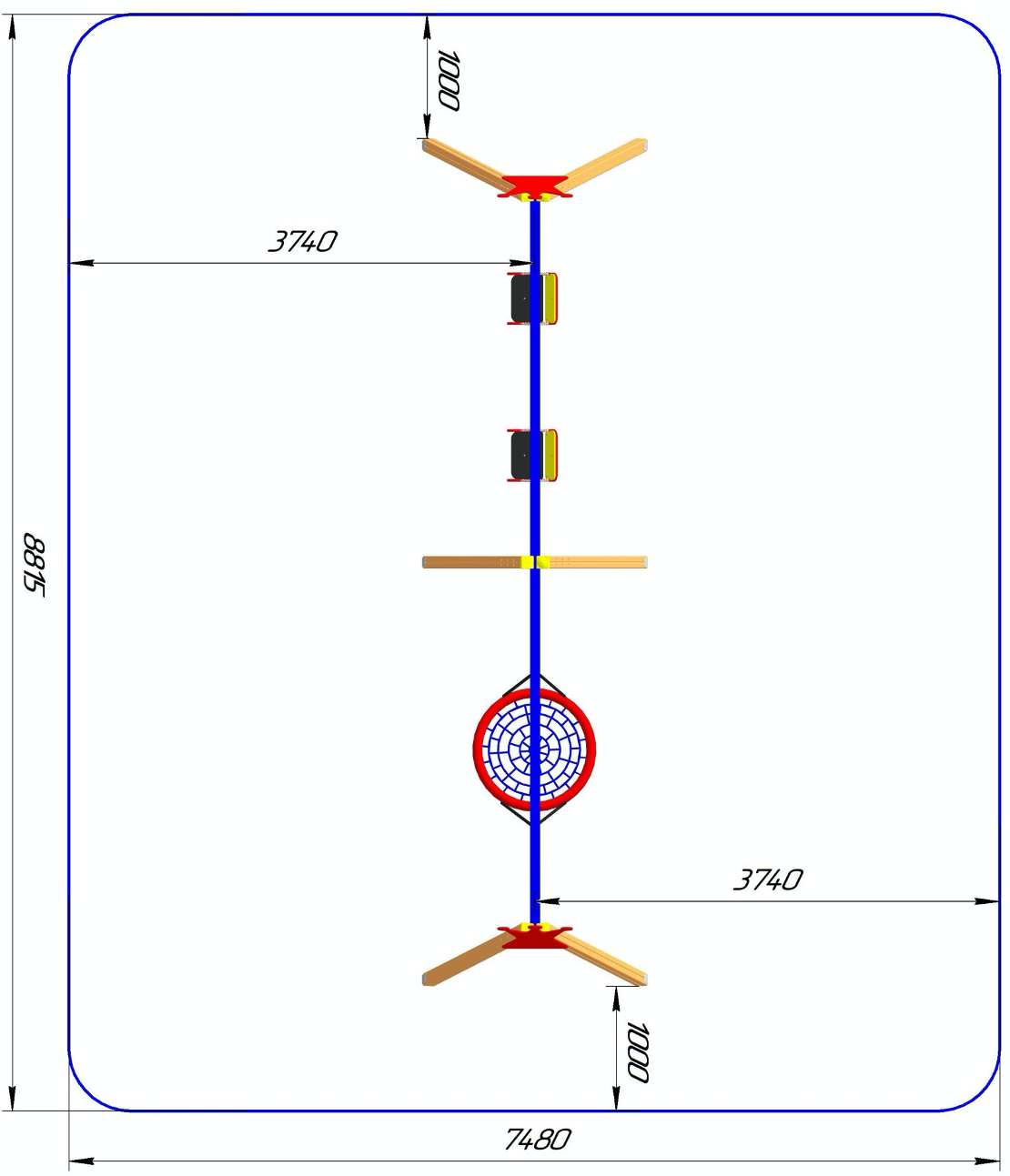 Занимаемая площадь с учетом зон безопасности и приземления: